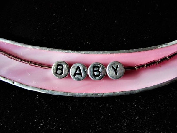 Unieke handgemaakte raam- of wandhanger model hobbelpaard. Van wit met rose opaalglas. Leuk voor de babykamer. Op bestelling te maken met de naam van de baby; aantal letters in overleg. Een zeer origineel kraamcadeau / naamcadeau!