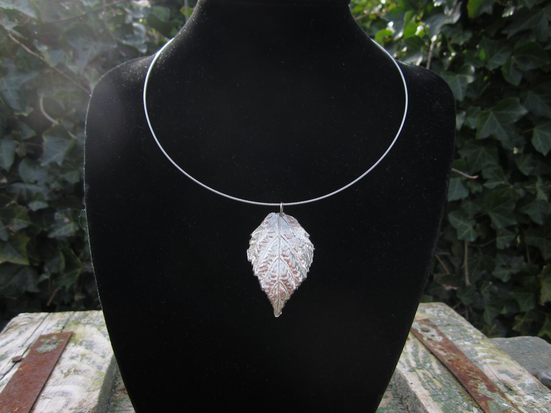 Ambachtelijk gegoten hanger model "Leaf" van zilvertin.