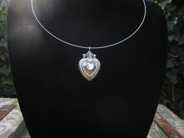 Ambachtelijk gegoten hanger model "Erin" van zilvertin voorzien van 2 strass-steentjes.