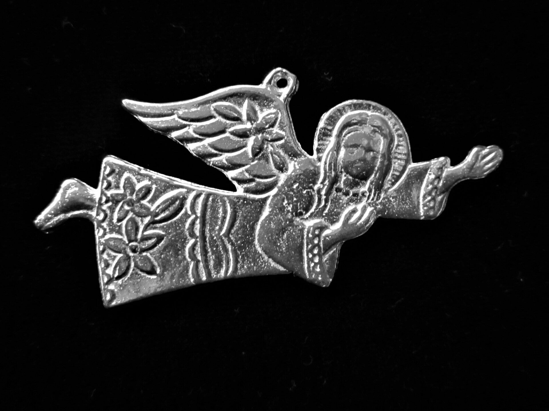 Ambachtelijk gegoten tinnen hanger vliegende engel