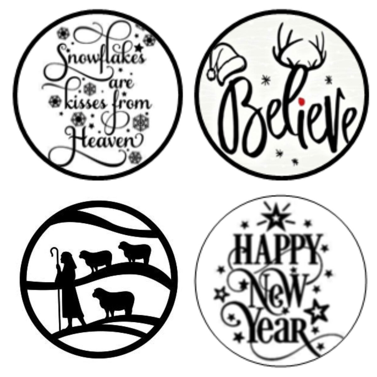 Waxine-lichtjes met afbeeldingen en/of teksten voor Kerst/Nieuwjaar; setje van 4 stuks, met de buitenkant van de waxine-kaarsjes in kerstkleuren (rood, groen, goud, zilver) Mooi verpakt in cellofaanzakje.