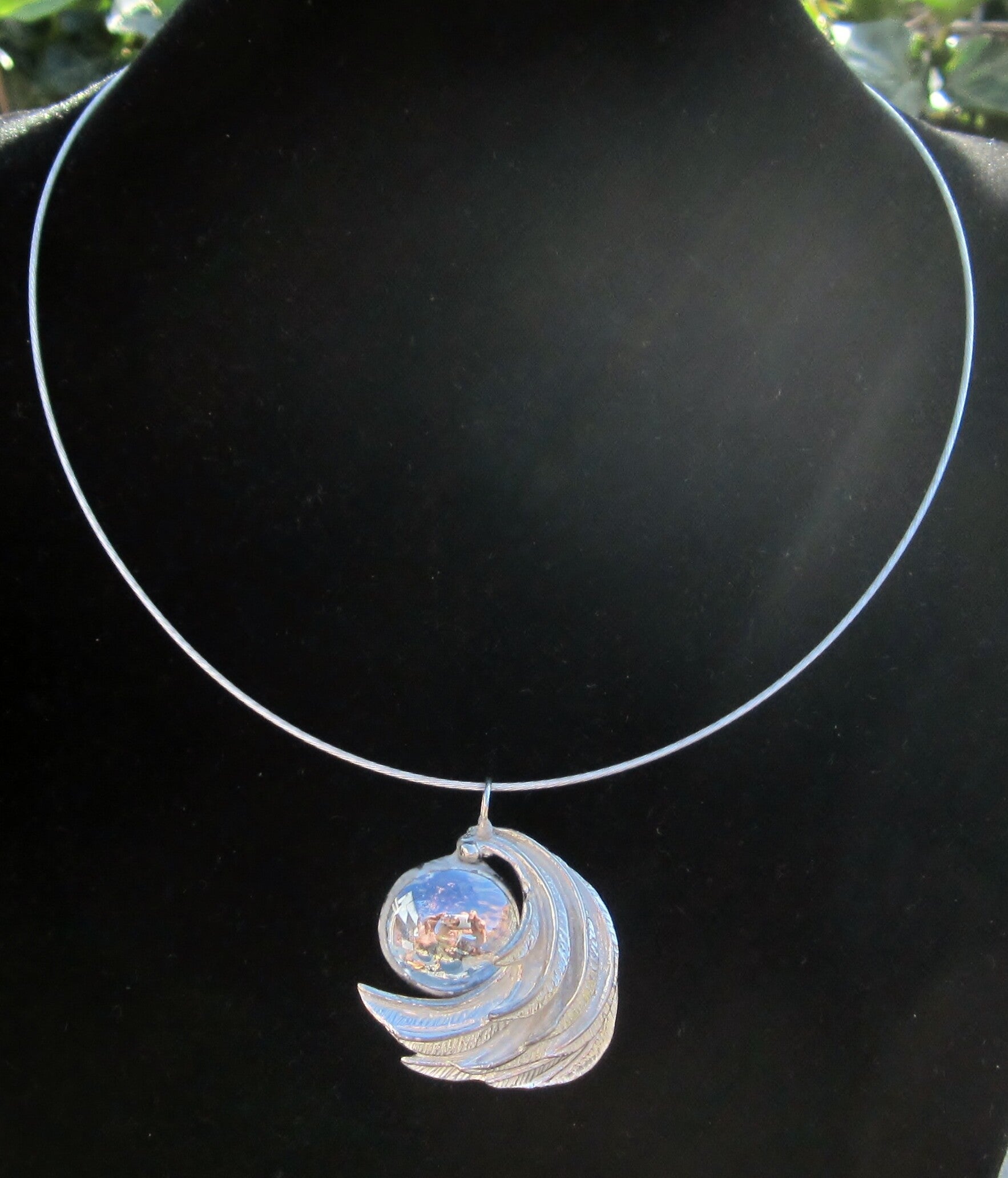 Ambachtelijk gegoten hanger "Vera" van zilvertin met blanke glasparel.